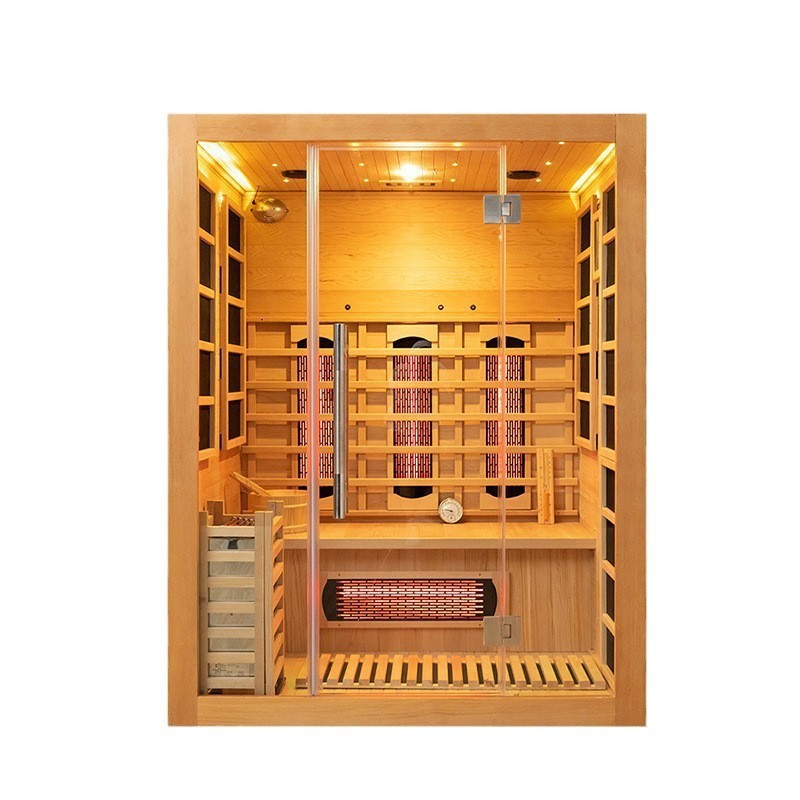 Premium træmaterialer: Vi tilbyder tre top-tier træ muligheder for 1-3 personers træ infrarød og damp sauna rum, alle hentet fra Canada: Canada Pine (et hårdt træ med høj styrke, god elasticitet og let forarbejdning og sømning); Canada Hemlock (har høj trætæthed, naturligt trækorn, god tekstur, korrosionsbestandighed og ingen deformation); Canada Red Cedar (praler med høj trætæthed, elegant fibre, korrosionsbestandighed, ingen deformation og en naturlig træduft).