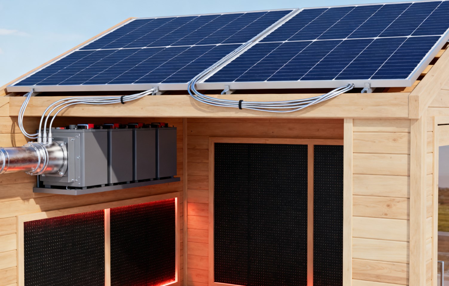 Fotovoltaisk energiintegration: Nogle kommercielle og husholdningssaunaer anvender en kombination af "solcellepaneler + energilagringsbatterier." I scenarier med tilstrækkeligt sollys kan de imødekomme 30%-50% af saunaens varmeenergibehov (data refererer til den tidligere nævnte industrikonklusion, at "fotovoltaisk strømforsyning reducerer energiforbruget med 55%"), hvilket reducerer det traditionelle elforbrug.