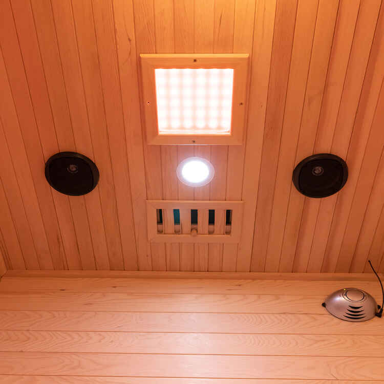 Det infrarøde og dampbadeværelse i træ til 1-3 personer er spækket med avancerede funktioner til at forbedre din wellnessrejse: Infrarøde varmeapparater og langt - infrarøde grafenvarmeplader (giver jævn, effektiv opvarmning til en dyb, afslappende sved); Oxygen Ionizer (renser luften inde i saunaen og skaber en frisk og forfriskende atmosfære); Læselys og højttaler (giver dig mulighed for at læse eller lytte til musik, mens du nyder din saunasession); Kontrolpanel (gør nem justering af temperatur, tid og andre indstillinger for en personlig oplevelse); Saunaovn & Light Wave Tube (arbejde sammen om at generere damp og infrarød varme, der henvender sig til både damp- og fjern-infrarød saunaelskere).