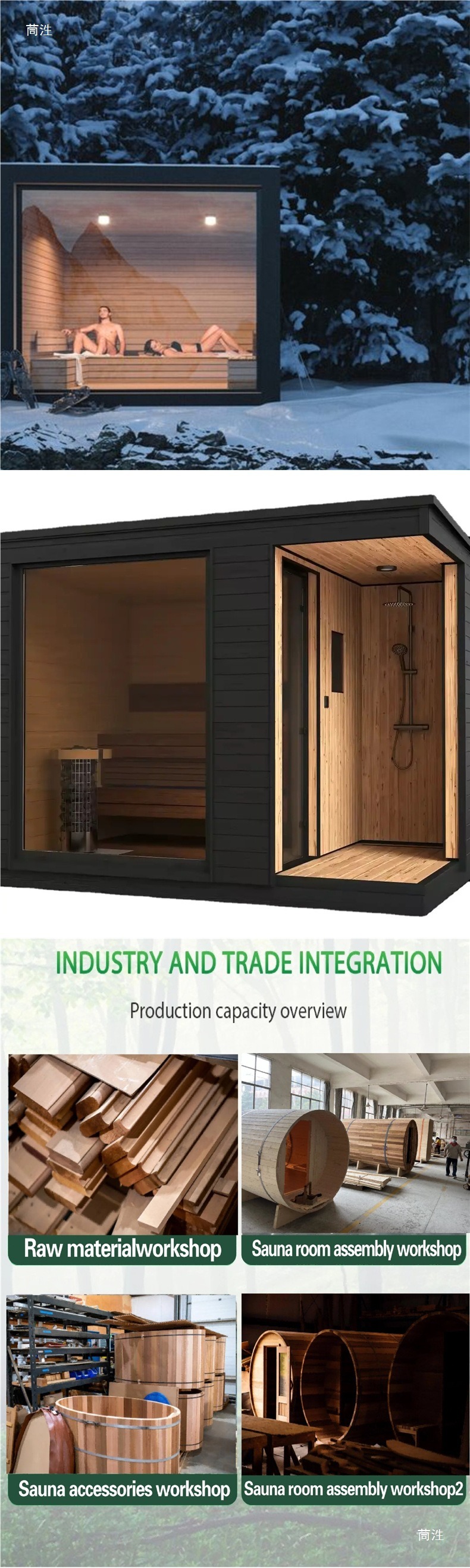 - Professionel saunaovn: Effektiv opvarmning til fordybende oplevelse: Udstyret med en saunaovn af høj kvalitet af sten eller bjælke, opvarmes den hurtigt og opretholder ensartet temperatur (justerbar fra 30-60 ℃). Hæld vand på de varme sten for at generere øjeblikkelig damp, blandet med den naturlige duft af træstammer, hvilket giver en autentisk saunaoplevelse, der lindrer muskeltræthed og stress.